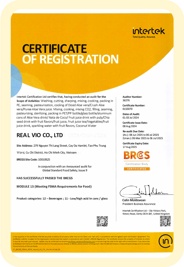 Real Vio is a leading beverage exporter,